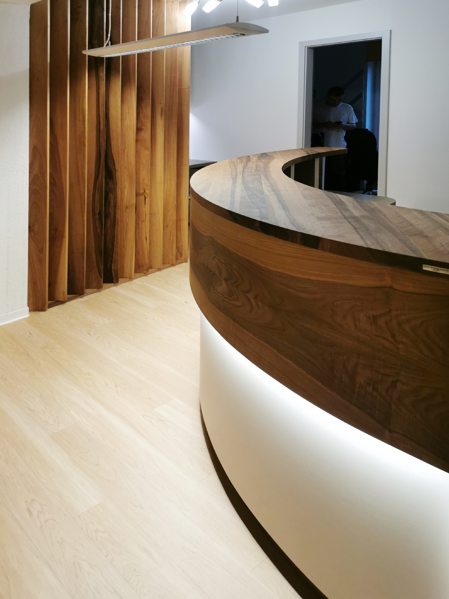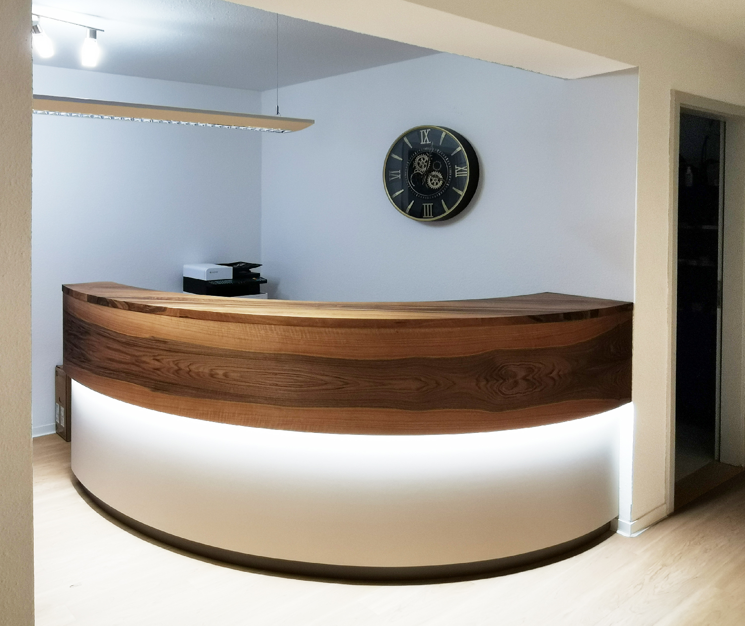 Wir fertigen Theken, die perfekt zu Ihrem Unternehmen passen. Hochwertige Materialien und präzises Handwerk sorgen für Langlebigkeit und Eleganz. Clevere Lösungen für Stauraum, Beleuchtung und Kabelmanagement sind inklusive. So entsteht ein individuelles Unikat für Empfang oder Verkauf.
