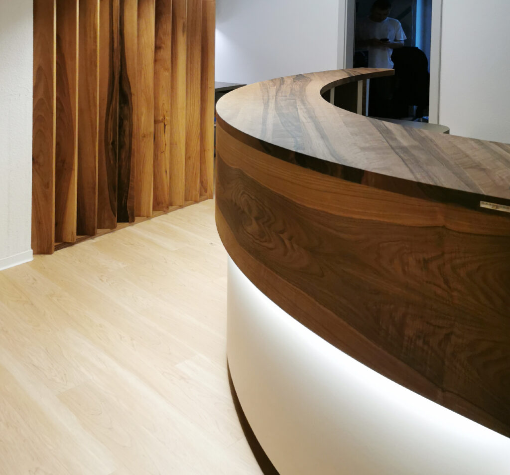 Hochwertige Materialien und clevere Details machen jede Theke zu einem langlebigen Unikat für Ihren Empfang oder Verkaufsbereich.